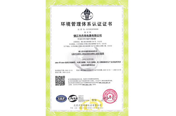 環(huán)境管理體系認(rèn)證證書