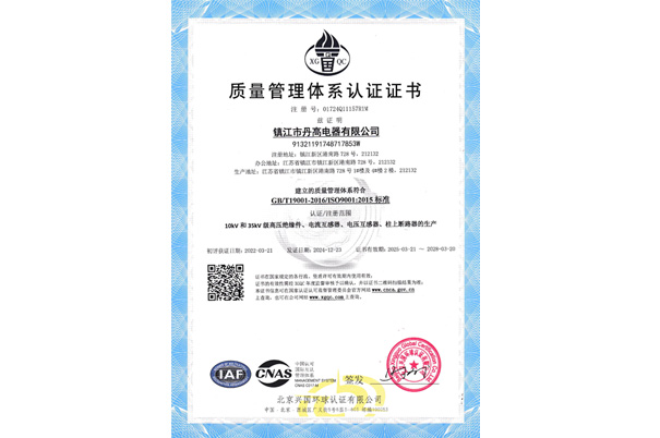 質(zhì)量管理體系認(rèn)證證書