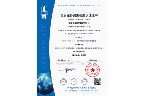 售后服務(wù)完善程度認(rèn)證證書