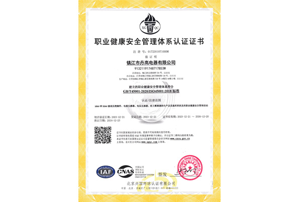 職業(yè)健康安全管理體系認(rèn)證證書